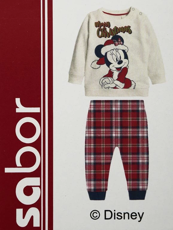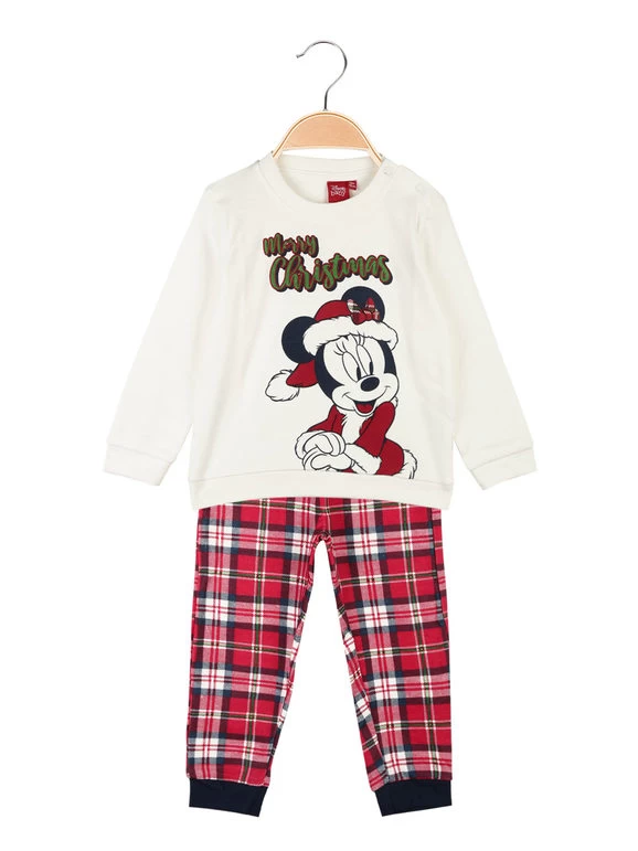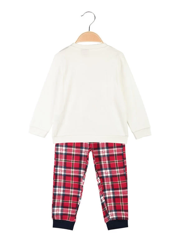 Pyjama de Noël, en coton chaud composé de : t-shirt à manches longues, boutons clip sur les épaules, imprimé design sur le devant ; pantalon avec taille et poignets élastiques au bout.