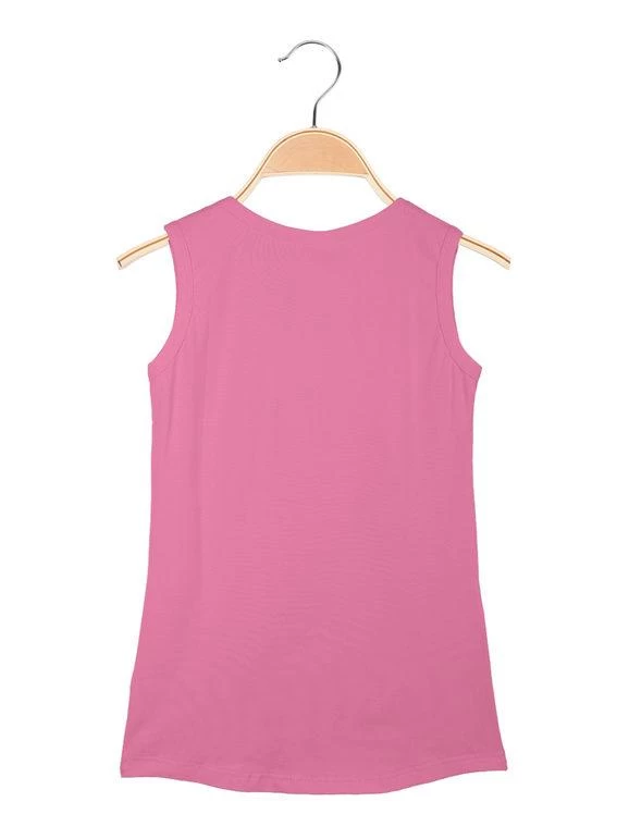 Débardeur ras du cou fille en coton stretch, motif imprimé sur le devant, longueur irrégulière avec dos légèrement plus long