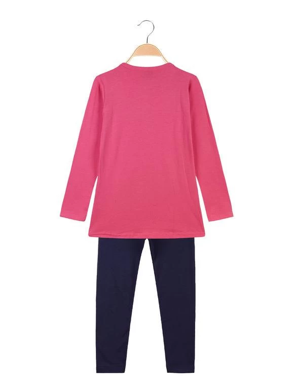 Costume long en coton composé de : t-shirt à manches longues et col rond, motif imprimé sur le devant ; leggings de couleur unie, avec taille élastiquée