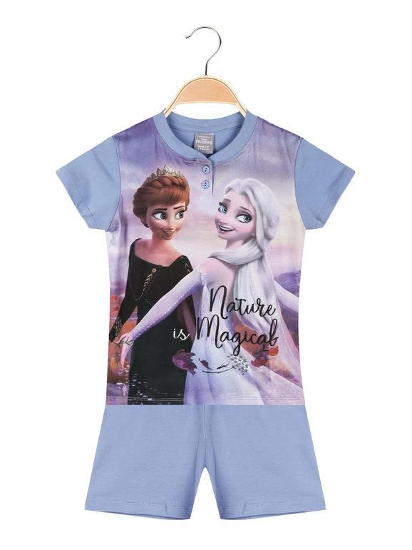 Pyjama court en coton pour fille, composé de: t-shirt à col rond avec imprimé Frozen design, boutons à l’encolure; Short de couleur unie avec taille élastiquée.Emballé dans une boîte
