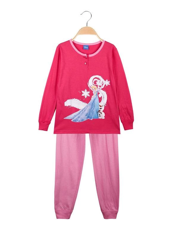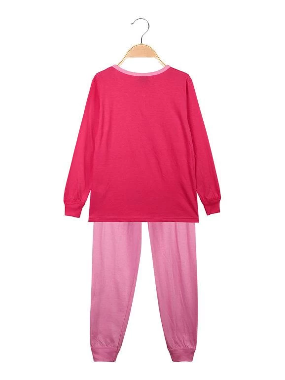 Pyjama long en coton composé de : T-shirt à manches longues, encolure ronde avec boutons, motif imprimé sur le devant ; pantalon de couleur unie, avec ceinture et poignets élastiques à la fin