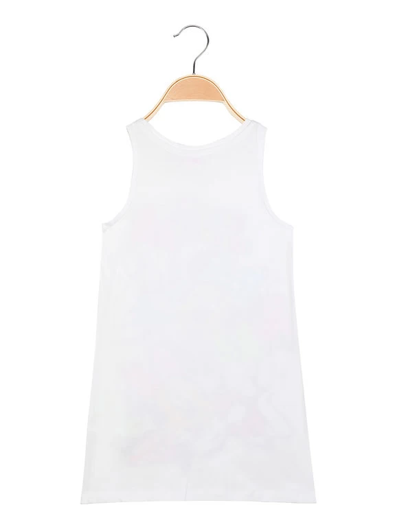 Maxi top col rond fille en coton, imprimé design sur le devant, modèle long.