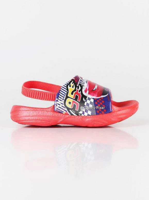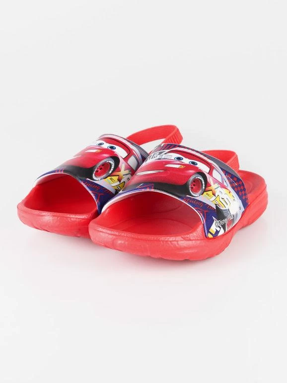 Chaussons pour enfants, tige en caoutchouc avec imprimé Cars, élastique à la cheville, semelle intérieure en caoutchouc avec inserts antidérapants, semelle en caoutchouc.