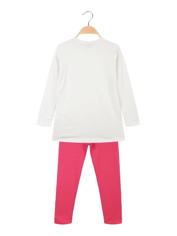 Costume long en coton composé de : t-shirt à manches longues, encolure ronde, motif imprimé sur le devant ; leggings de couleur unie, avec taille élastiquée.