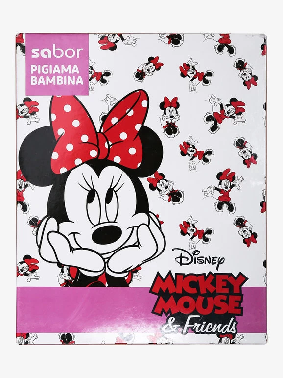 Pyjama long pour fille en coton peluche, composé de : t-shirt à manches longues, encolure ronde avec boutons, poignets élastiqués, imprimé Minnie design sur le devant ; pantalon de couleur unie, taille élastique, poignets élastiques aux extrémités.