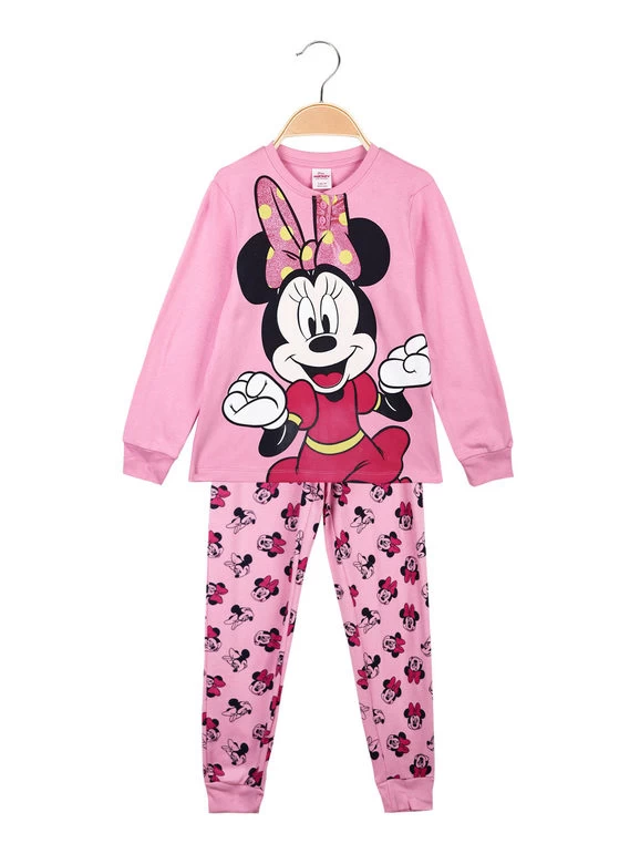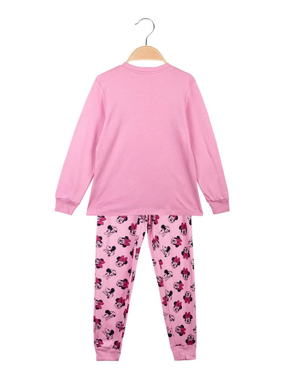 Pyjama long pour fille composé de : T-shirt à manches longues, boutons à l’encolure, motif imprimé sur le devant, doublure chaude en coton ; pantalon avec imprimés, taille élastiquée, poignets aux extrémités, intérieur en coton chaud.