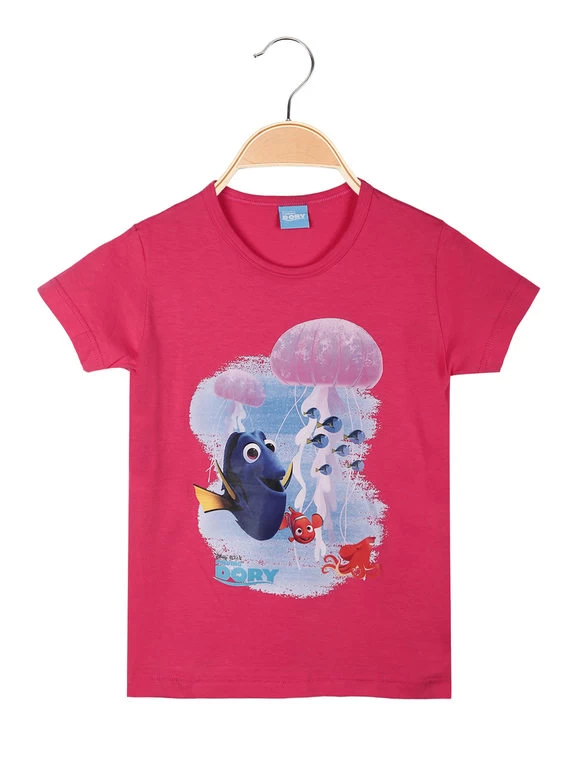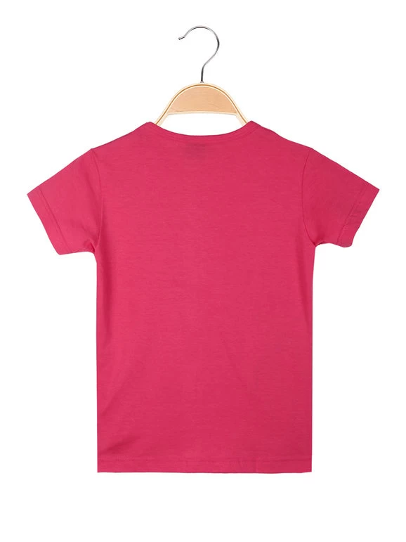 T-shirt fille col rond en coton, manches courtes, imprimé dessin sur le devant