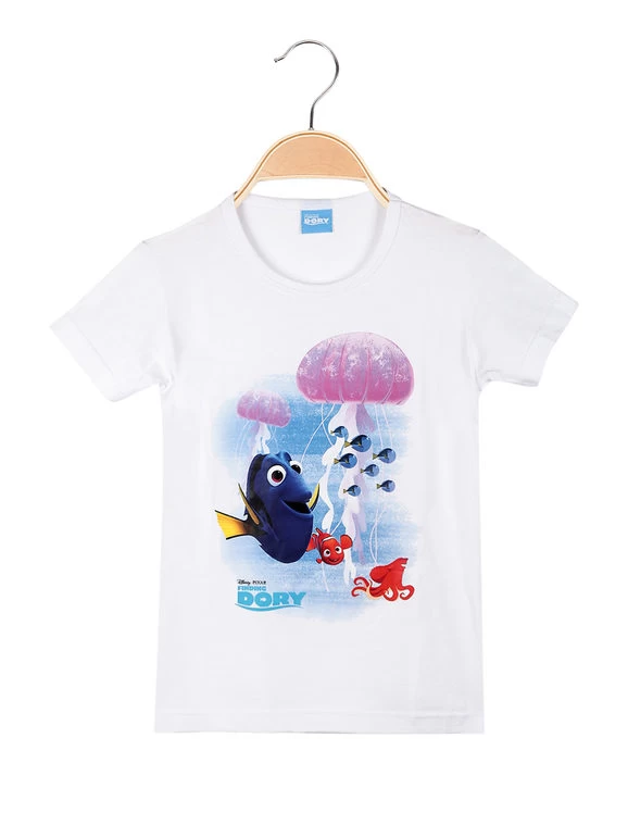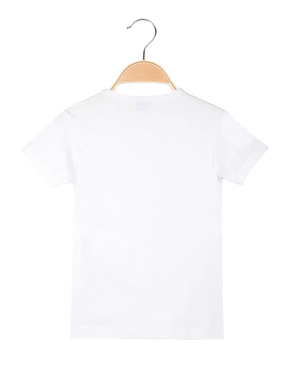 T-shirt fille col rond en coton, manches courtes, imprimé dessin sur le devant